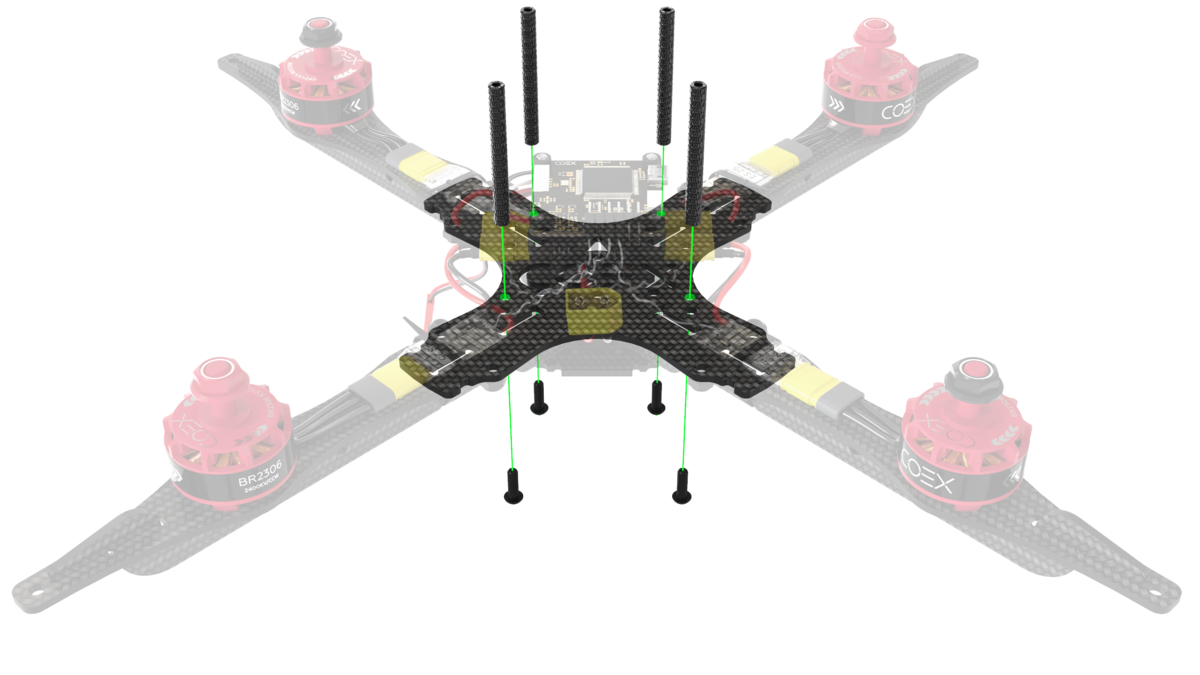 Install 40mm aluminum racks on the M3x10 screws.