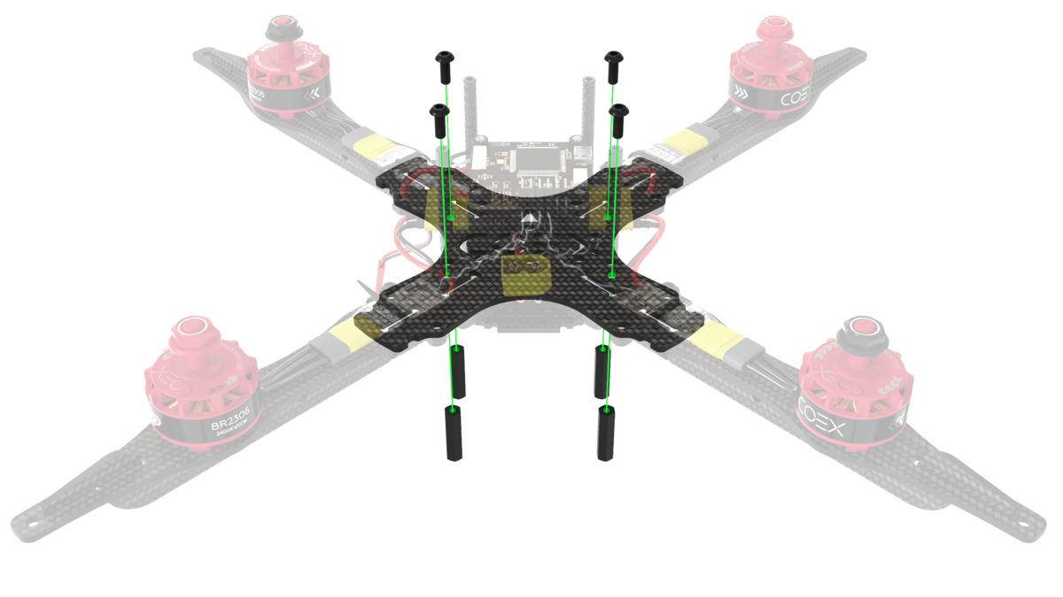 Install 4 6mm nylon posts and fix them with the M3x5 screws.