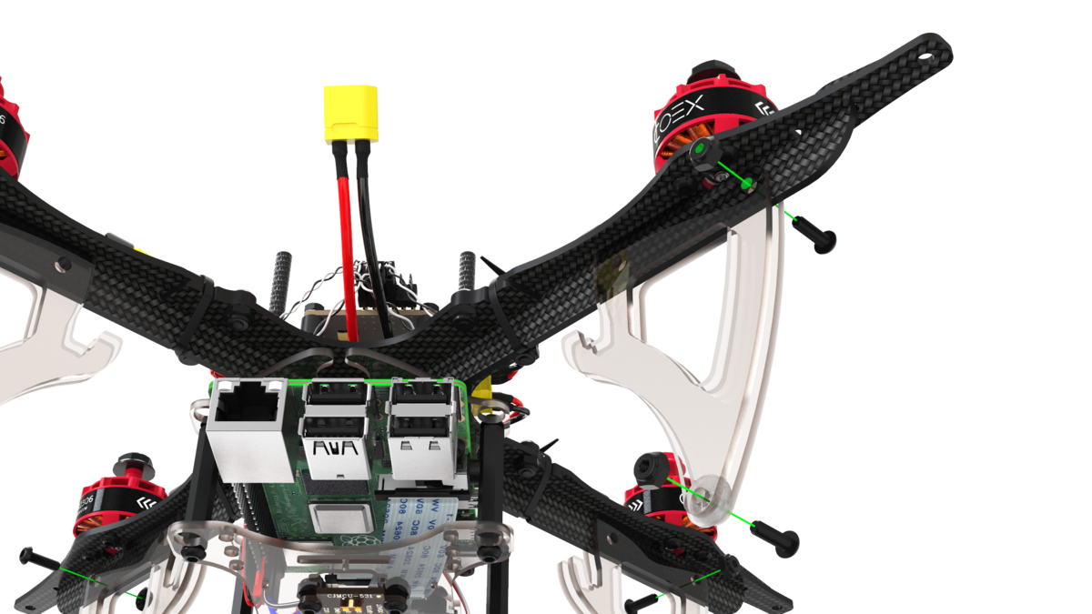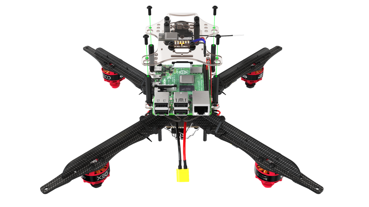 Install the battery strap and connect the flight controller to the Raspberry Pi using a USB cable.