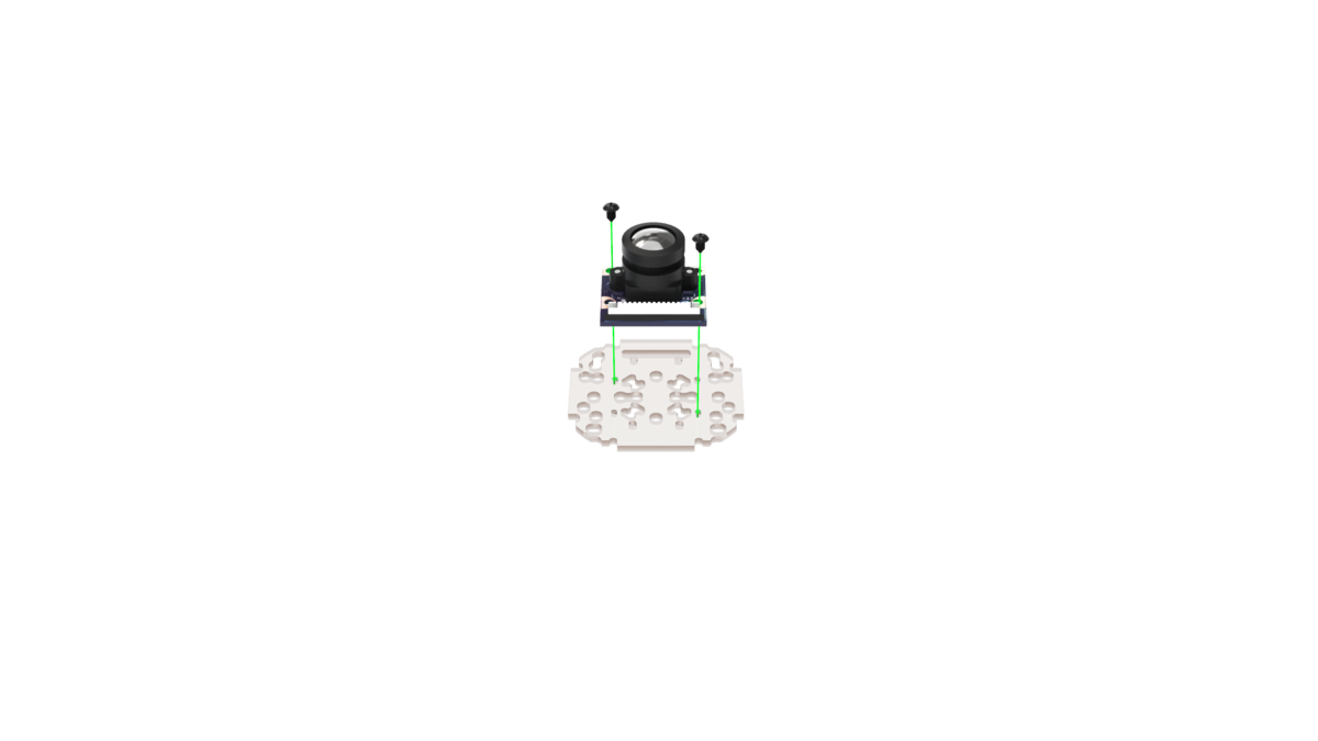 Install the camera on the small mounting deck and fix it with 2 M2x5 self-tapping screws in the upper left and lower right corners.
