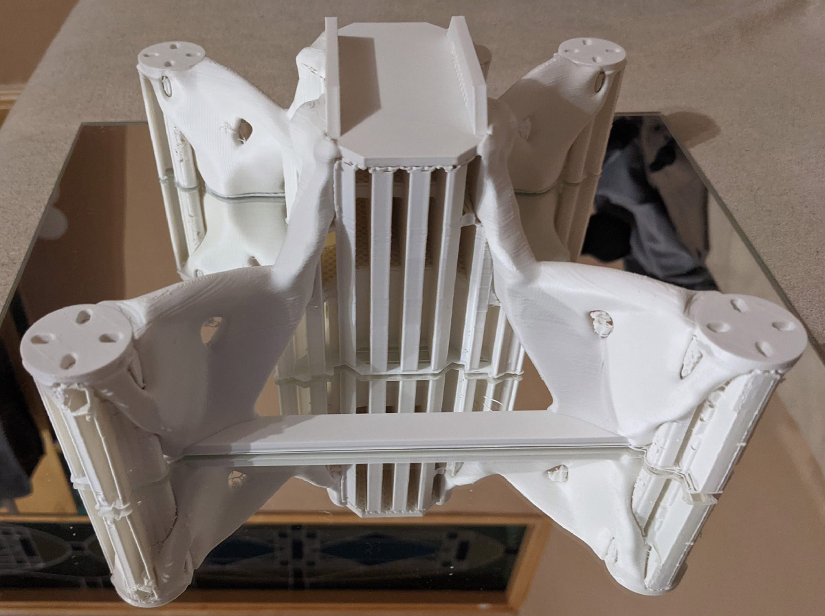 - Support Structure: The support structure for the frame is very complex and the parameters used in the slicer resulted in it being unable to be removed without destroying the model