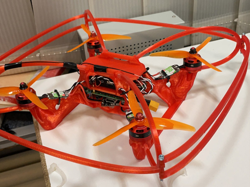 This prototype took 48 hours of printing and used 277 grams of filament including 100 grams for the support. Installation of the components is very easy as no other tools than a screwdriver are needed. This prototype was the first to take flight in January 2021. Please see this video.