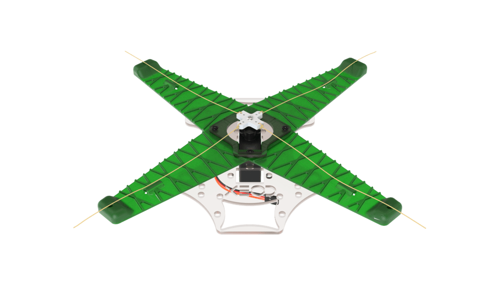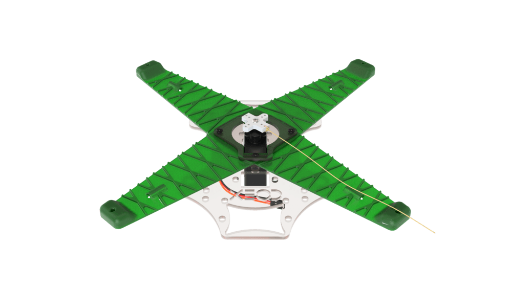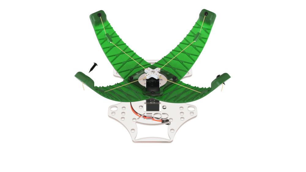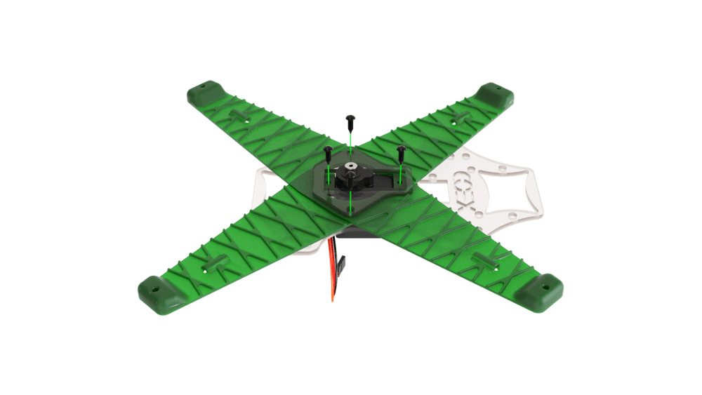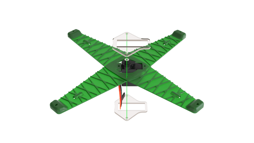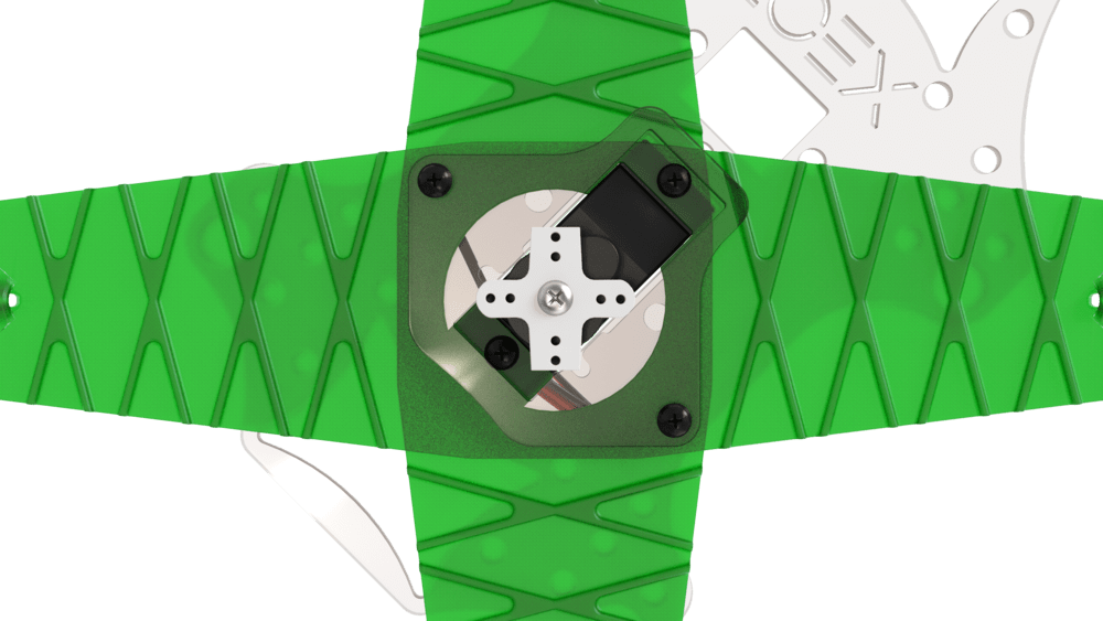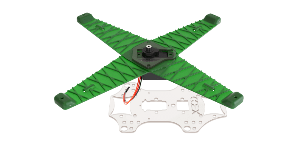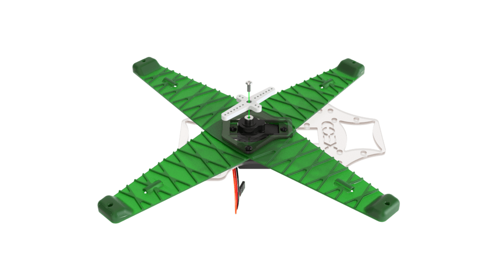 Install the cruciform mount onto the gear and secure it using the screw attached to the servo.