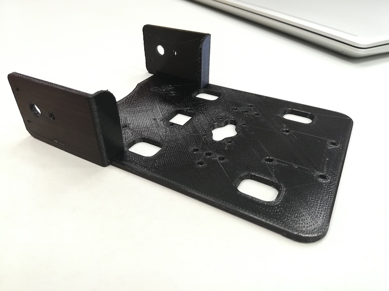 Платформа содержит: крепления под мотор-редукторы, отверстия для лазерного дальномера и Pi камеру. Также в основе предусмотрены монтажные отверстия для монтажа к квадрокоптеру и облегчения конструкции.