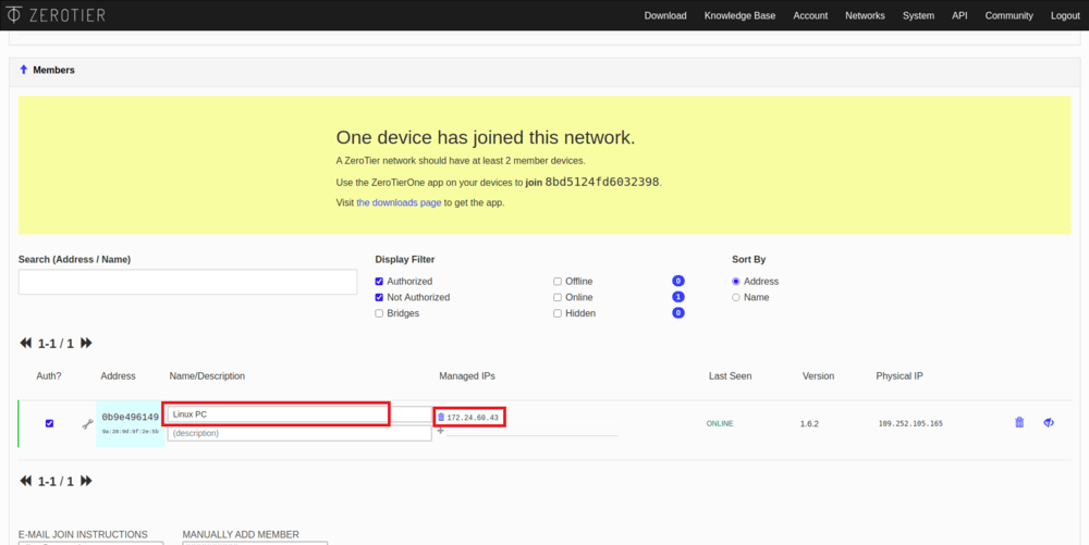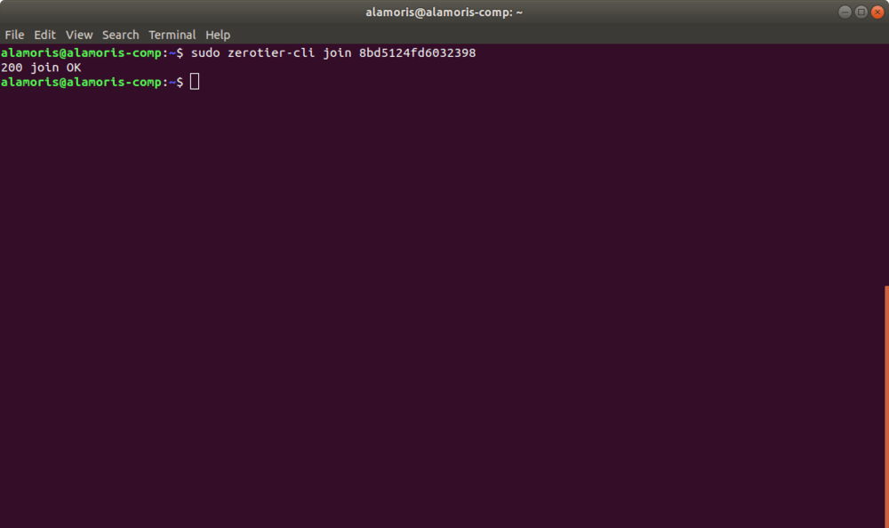 sudo zerotier-cli join network-id, гдеnetwork-idэто ID вашей сети.