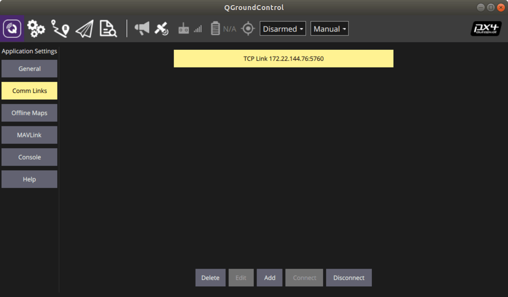Откройте GQC и во вкладке Comm Links добавьте TCP подключение, указав IP дрона. Подробнее про удаленное подключение читайте тут.