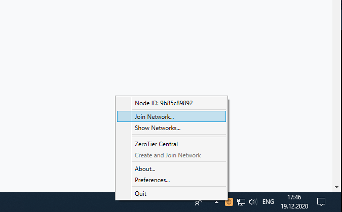 В панели задач нажмите на иконку ZeroTier One.