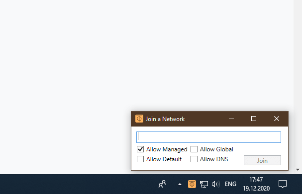 В появившемся окне введите ID вашей сети и нажмите кнопку Join.